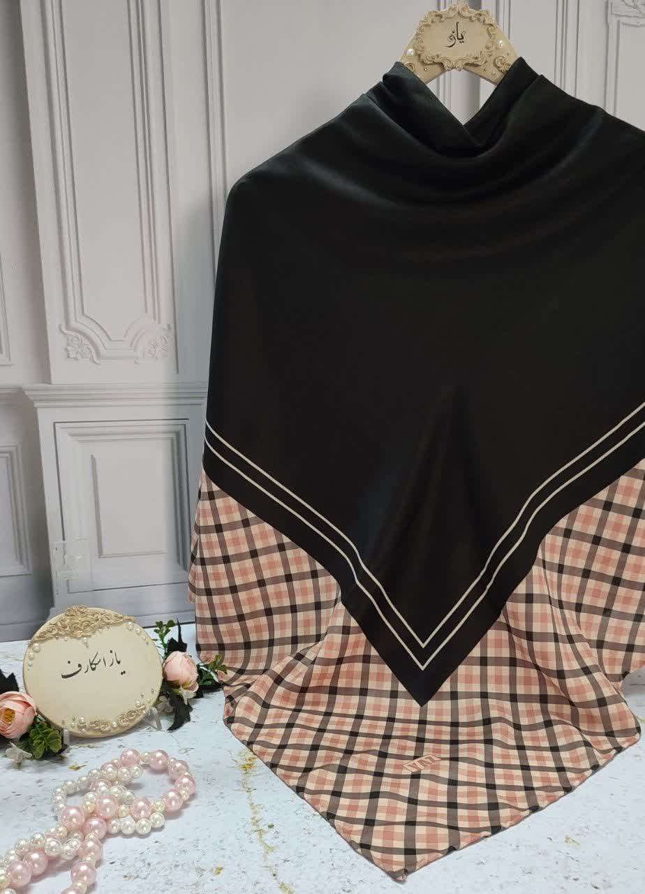 روسری مشکی دور حاشیه چهارخونه عرض ۱۳۵