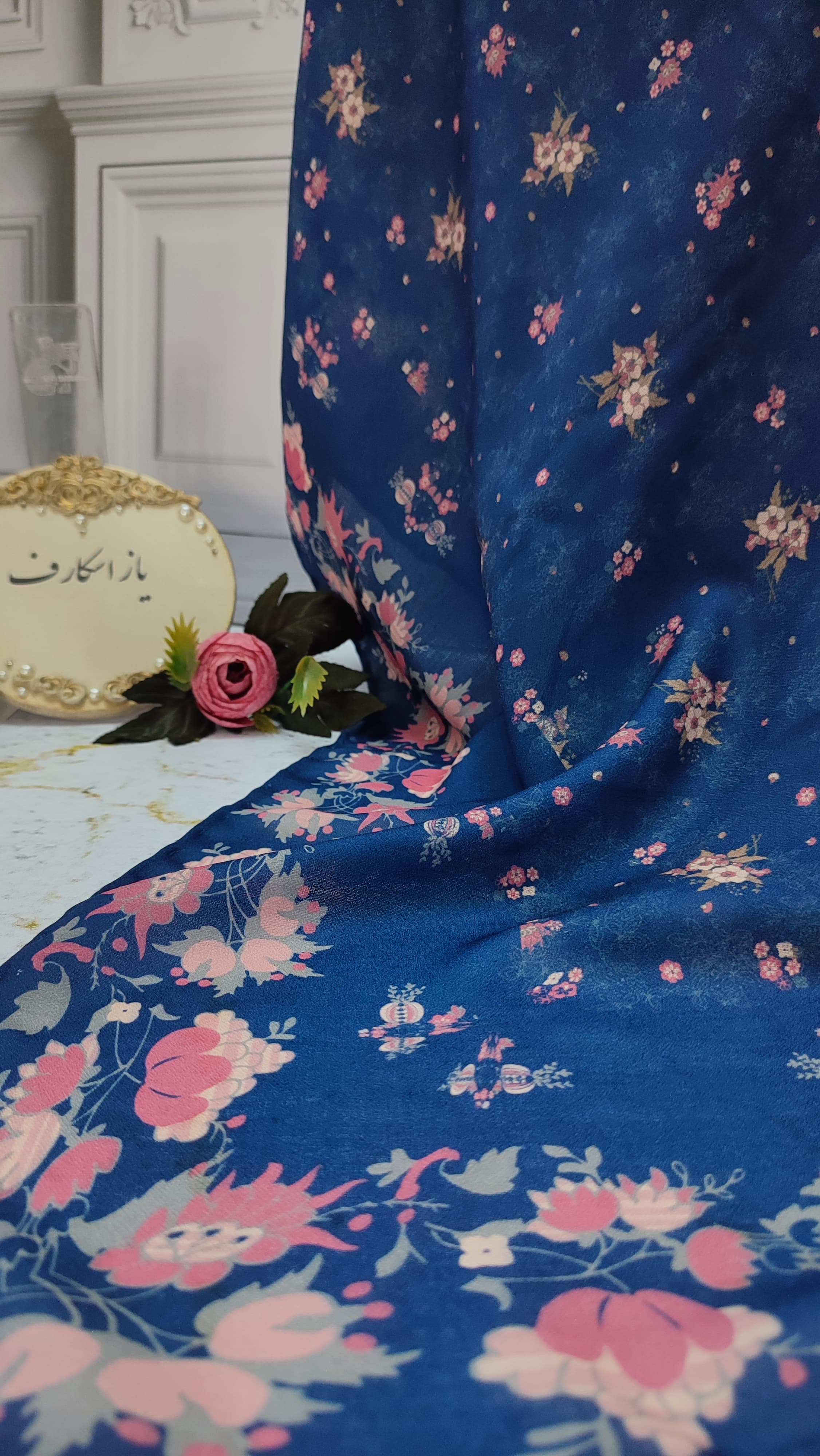 روسری سورمه ای گلگلی دور حاشیه عرض ۱۳۵