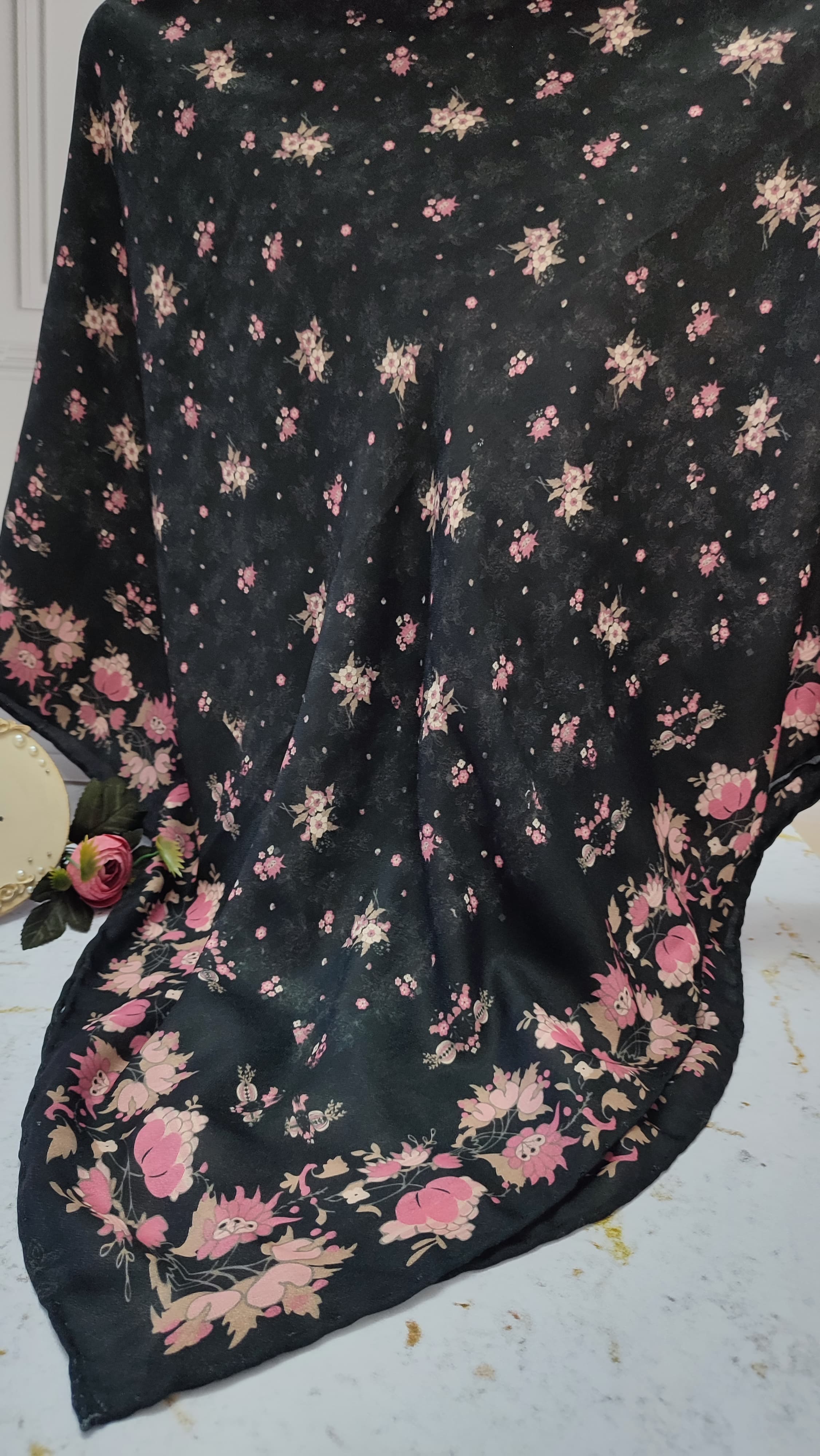 روسری مشکی گلگلی دور حاشیه عرض ۱۳۵