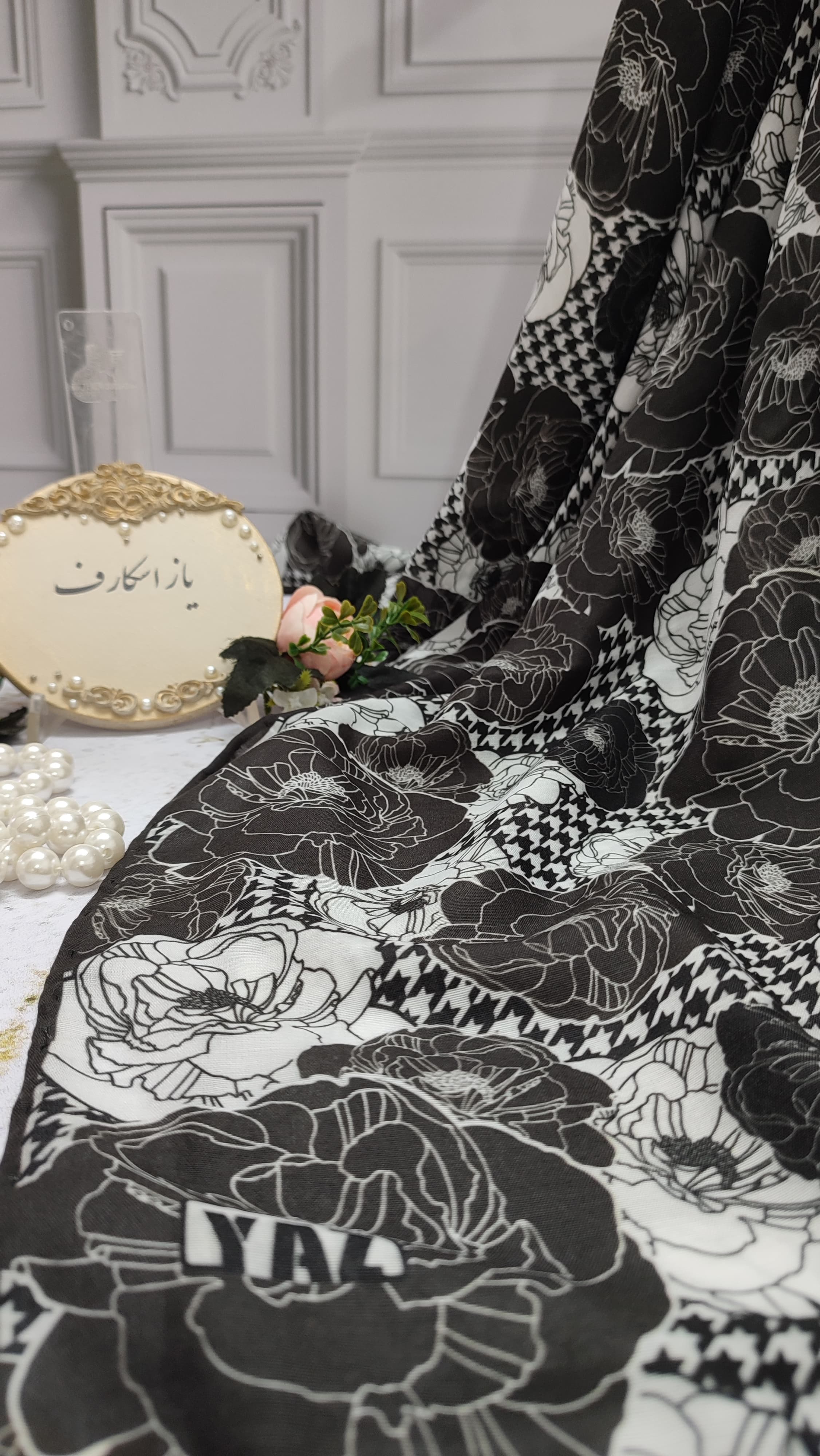 روسری مشکی سفید رز اسپرت عرض ۱۳۵
