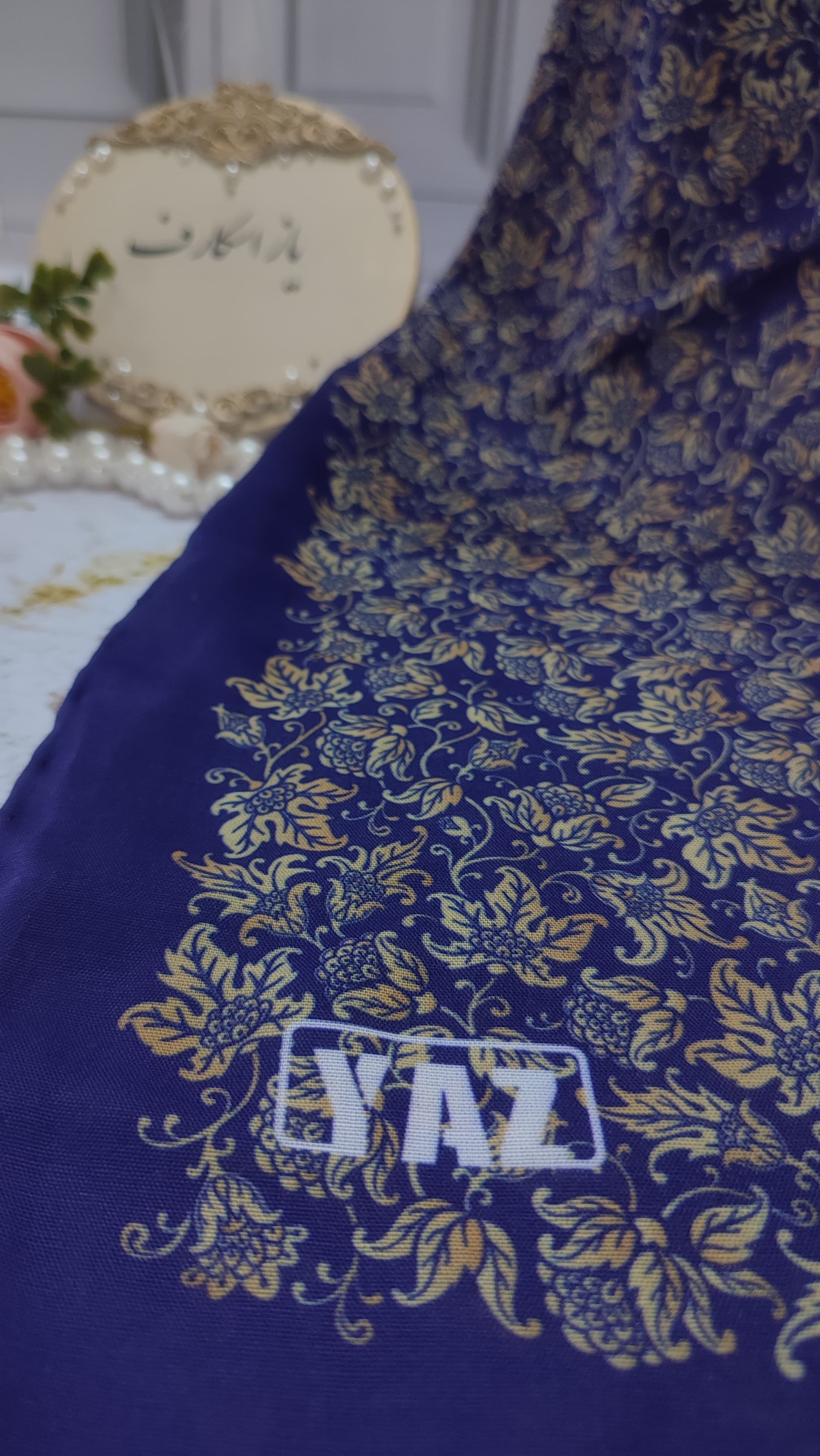 روسری آبی نفتی طرح سنتی عرض ۱۳۵
