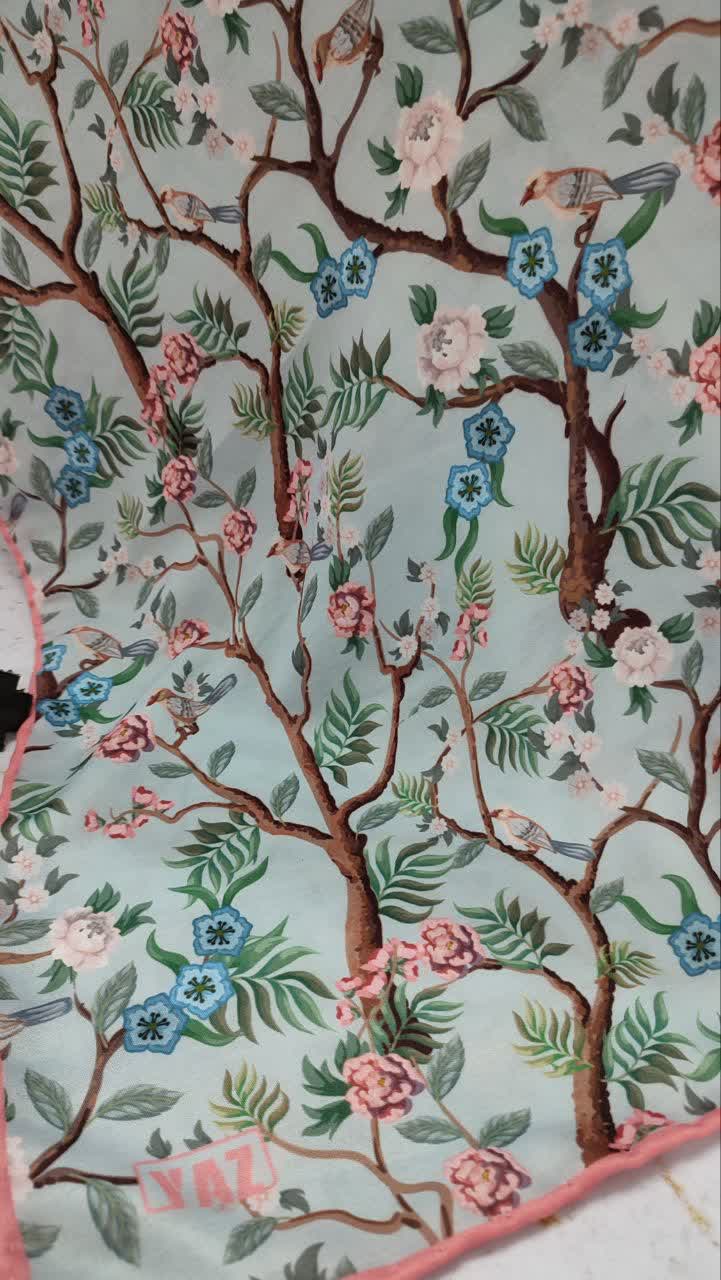 روسری آبی درخت و پرنده عرض ۱۳۵