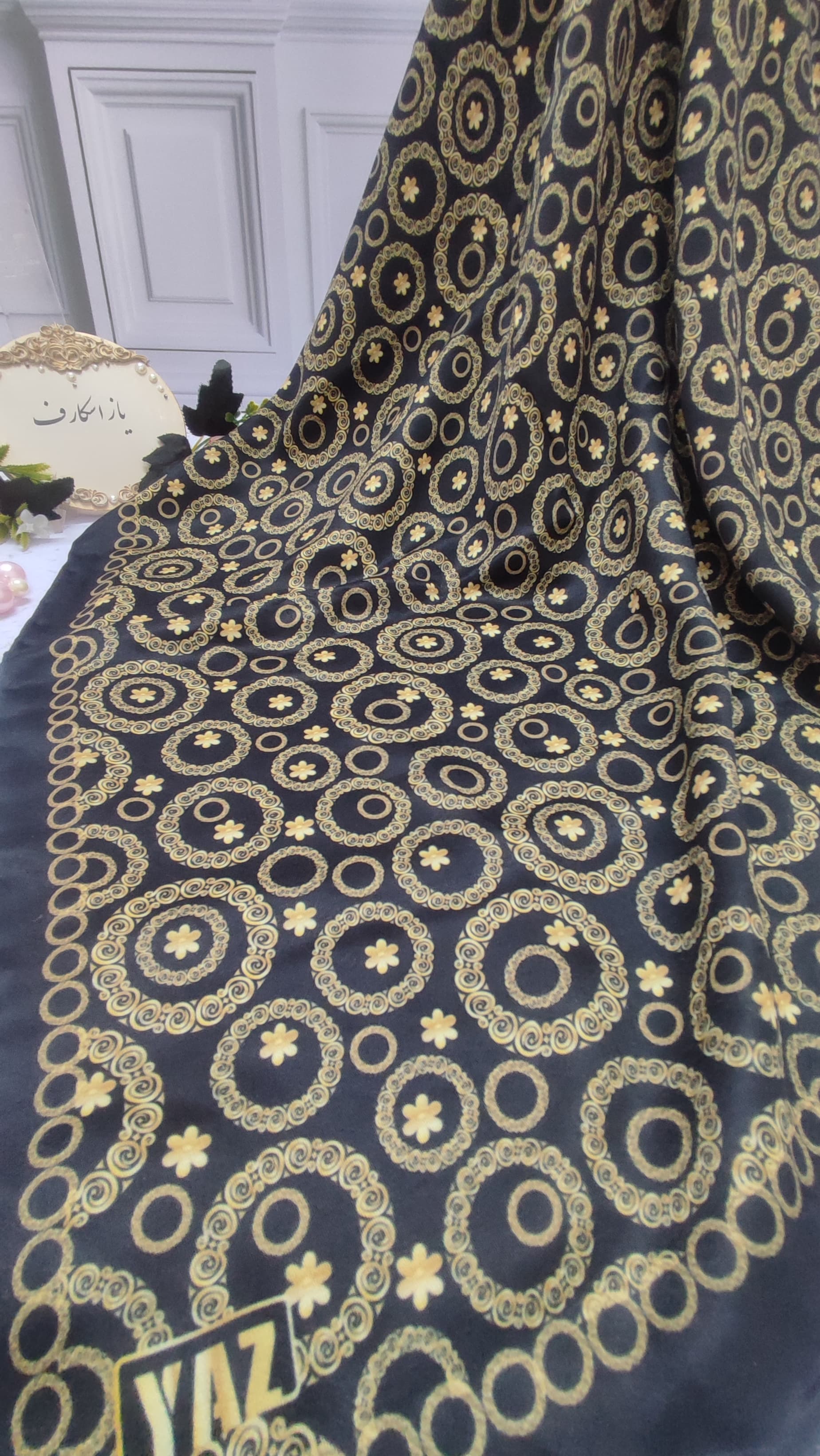 روسری مشکی طلایی شکوفه عرض ۱۳۵