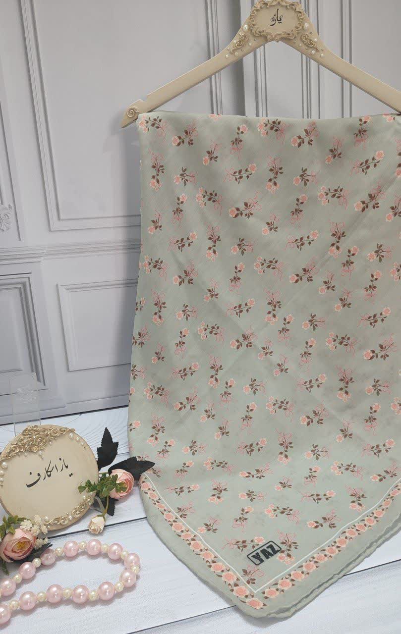 روسری پسته ای گل و پاپیون عرض ۱۰۰ (ست مادر دختری)