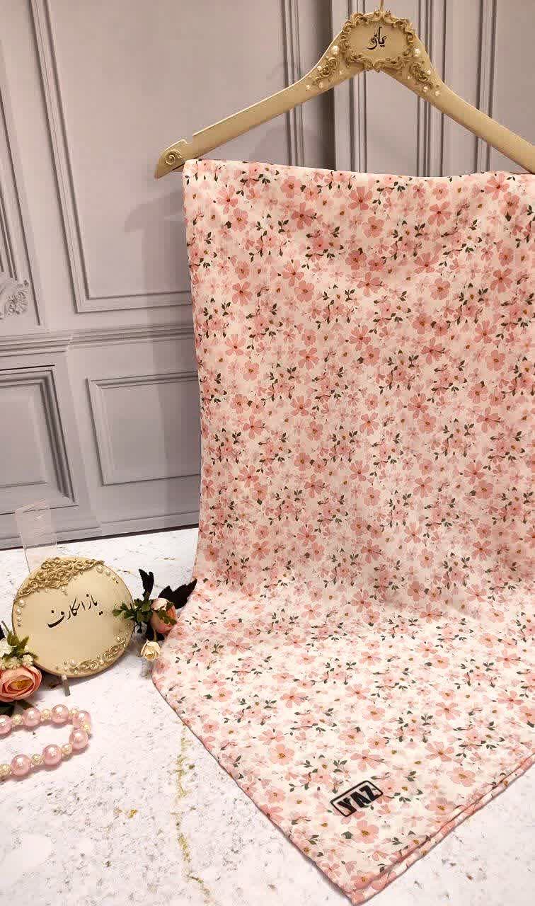 روسری شکوفه صورتی عرض ۱۰۰ (ست مادر دختری)